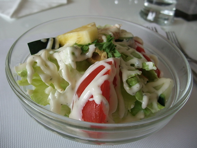 生菜沙拉:先吃了起士盤後,這生菜沙拉可救贖了葉子的胃口!生菜品質OK,爽口開胃哩.......