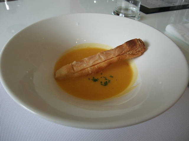 南瓜濃湯:中規中矩,但酥皮沾著濃湯享用,比較好吃!