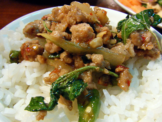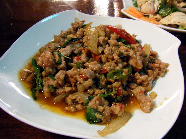 打拋豬肉:除了葉子愛吃的綠咖哩雞外,這打拋豬肉,也是泰料的白飯殺手級之一,第二道菜還沒上桌,大家白飯都去了一半了!葉子吃了很多間泰料店,發現這品料理,還沒吃到難吃的際遇~反而是蝦餅、蝦醬炒青菜類,很容易踩到不好吃