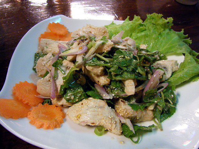 泰式東北涼拌雞肉:若用成雞絲型態,口感&滋味會好吃些。若要點涼拌菜色,葉子較推薦涼拌海鮮(選擇微辣即可,較不影響涼拌的整體口味)。