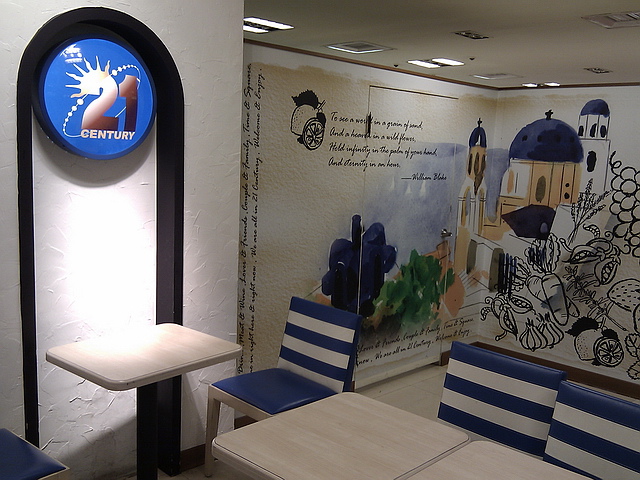 21世紀風味館‧新光三越中山店:中山店B2餐飲,對於葉子&魔女而言,算是很虛的美食街。反而,附近的冰淇淋、Opera等甜點,吸引葉子多很多哩!BTW,魔女看到一份鮮鮭醬焗烤,直接放棄烤雞的選擇,最後,就各點兩份套餐吃。(沒點烤雞,真得是錯誤的決定啊~嗚嗚)