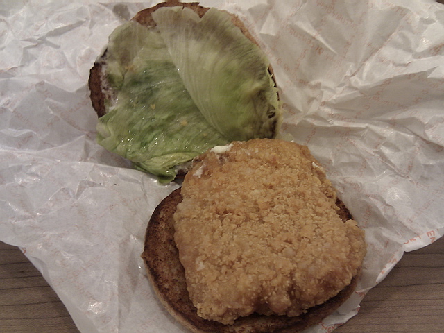 炸雞腿堡:好歹是塊雞腿肉,就算不怎麼多汁,不那麼嫩,也不可浪費,點了就要吃掉啊![]()