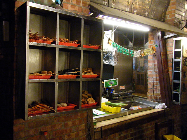 穀倉碳烤驛站:店位於民權路、新美街路口處。陳設為老屋型態,店前高掛的燈籠串,氣氛自然先加個分。一、二樓皆有座位。餐點方面,有碳烤、炸物、湯物、炒物、冷菜、酒水飯等類,價格介於(除了時價品外)$10~150間,價位平實(詳細可參考其MENU)。題外話,穀倉可非秋收分店,詳情可點進店家部落格瞧瞧