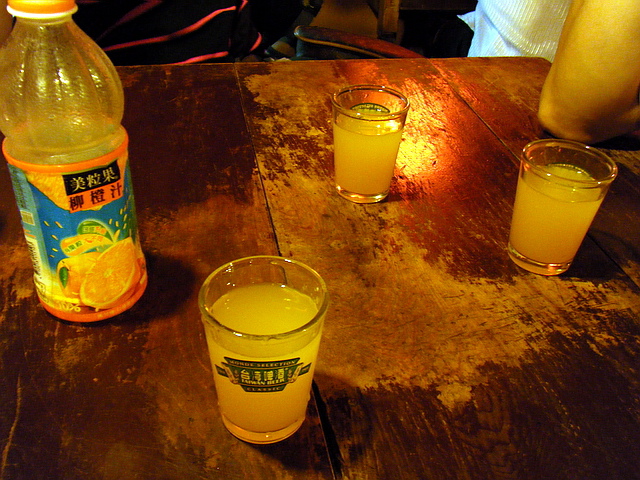 依舊不喝酒,但達哥卻拿了瓶柳橙汁