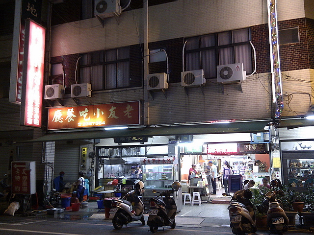 老友小吃店:週末夜晚,人潮依舊多,店內店外皆為滿啊!但親切的阿姨說裡頭還有一桌位置,就這樣,葉子和學長就窩在大桌享用我們的晚餐啦!