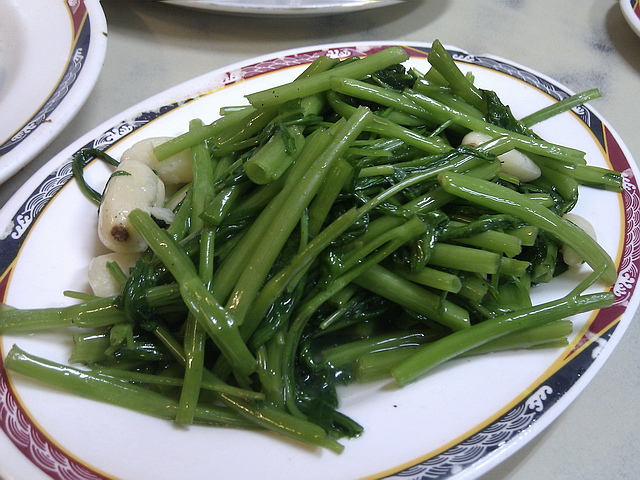 吃飯不可少的「炒青菜」,加著蒜頭爆香,有阿母的味道!與一堆淋著肉燥的燙青菜相比,葉子深愛此味啊......
