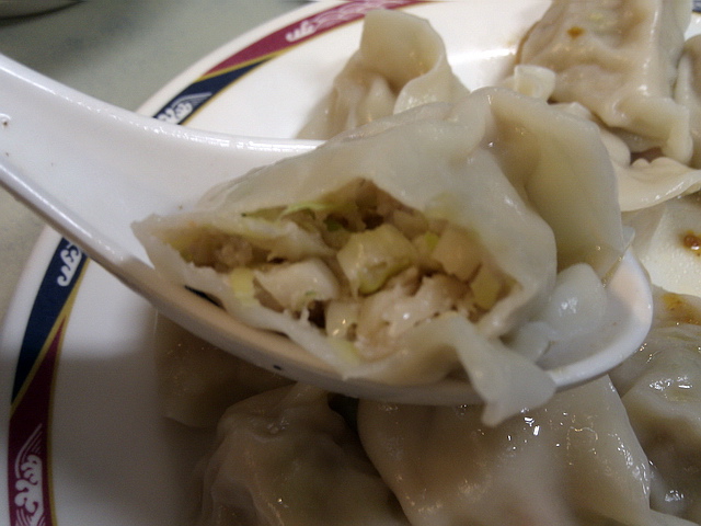 高麗菜水餃:之前很多人推薦的水餃,一上桌,果然有大顆的身軀風範。皮厚不死味,若說移後,就是內餡口感,顯得空洞!若再紮實飽滿些,就很像家裡自己包的水餃,有記憶的味道~當然,引領記憶湧現的味道,並非一定多美味,大家可別會錯意思