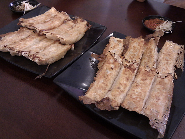 招牌鍋貼:共有三款口味(原味、麻辣、蔬菜),唯有麻辣口味最讓人印象深刻,麻香不死味,另外兩款口味,就顯得普通些;而外皮部分,現點現做,口感酥脆。整體而言,除了價格比一般鍋貼貴些,但大小、內餡算是優於八方雲集之流等