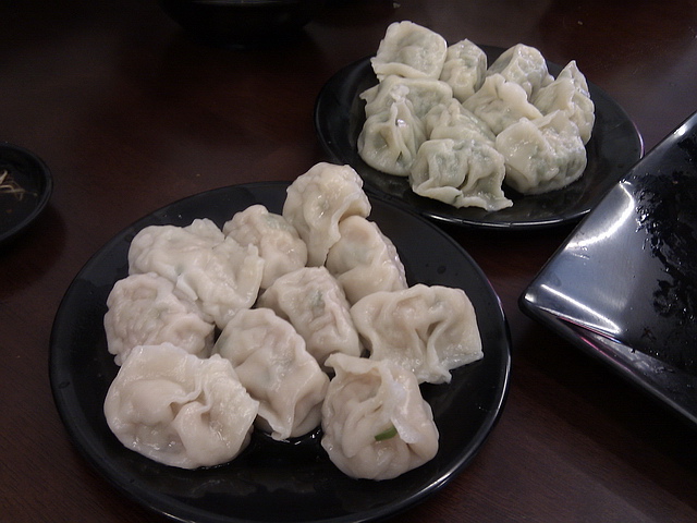 水餃:高麗菜、韭菜各點一份,大小精緻,稍微比味津水餃的大些,價格卻便宜一點點。外皮與內餡的比例恰好,不是那種空虛的水餃,再者,皮也屬於有口感的厚度,搭配算飽滿的餡料,滋味不錯哩