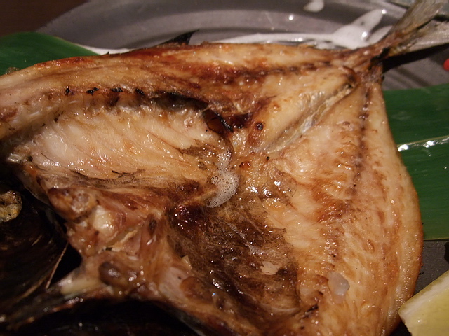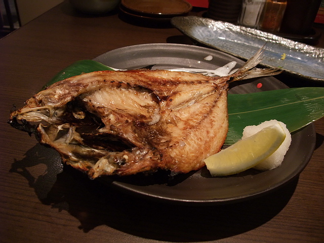 香烤竹筴魚:讓葉子覺得好吃的烤魚,一上桌,那熱呼呼的香氣,引人食慾;再者,不知是否用餐人潮尚未滿座,這烤魚的火候,有別於初訪時(烤肉串)的壞印象哩。當然,依舊感謝魔女的巧手,讓葉子免受魚刺之苦,可大口吃魚肉
