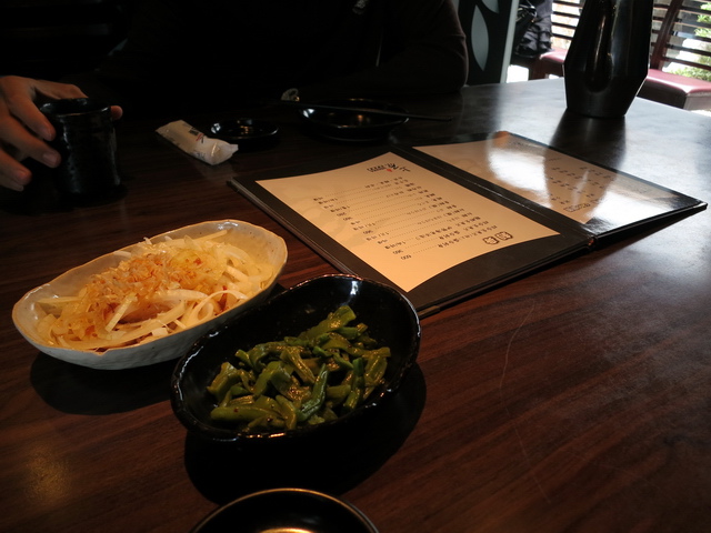 阿姨熟稔遞上menu、茶水、小菜(貢菜、涼拌洋蔥),才翻開一兩頁,阿姨就急著問要吃什麼,還真考驗大家的速讀能力