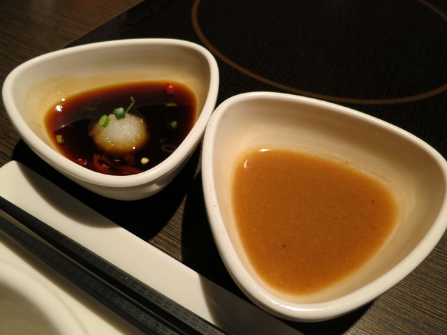沾醬部分,有兩種口味,左為酸橙醬、右為胡麻醬,葉子喜歡其胡麻醬搭著蔬菜的滋味!