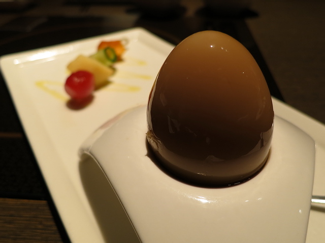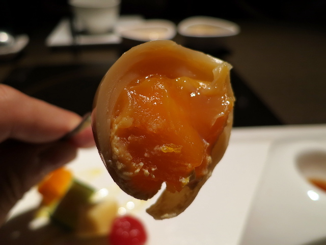 嚴選套餐‧開胃菜(糖心蛋、鮮蔬串):每回吃聚火鍋,葉子必點的糖心蛋,很好吃啊!旁邊的鮮蔬串,就沒什麼特色,普普啦!