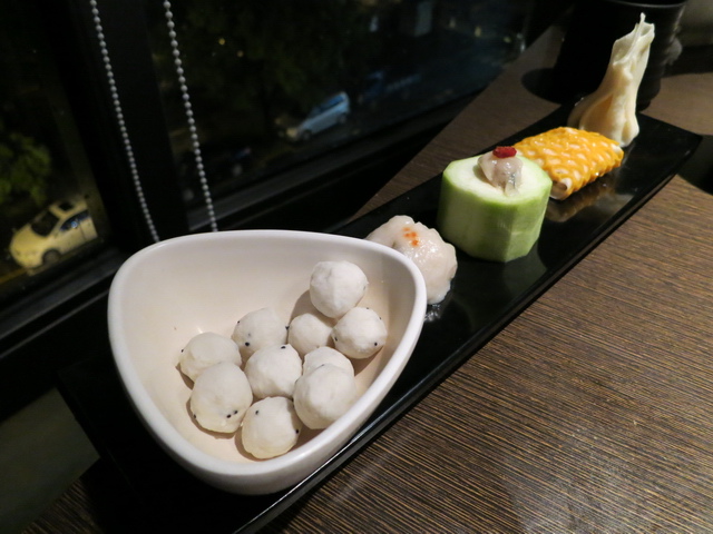 嚴選套餐‧綜合季節創意拼盤:真得吃不太下,這一盤手工丸子、魚漿等的組合拼盤,就讓給點精緻套餐的朋友吃。所以,除非胃口真得很大,不然,還是別點嚴選套餐!