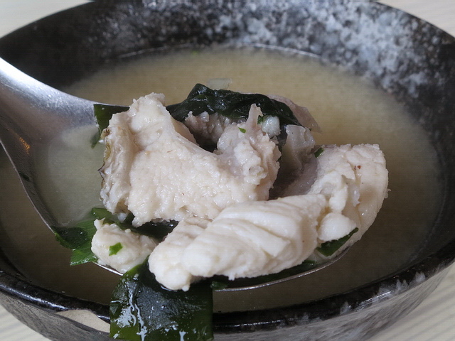 深海石斑魚湯(小):魚肉部分,有魚肉、魚肚部位;湯頭方面,選擇味噌(選清湯比較優)。按葉子個人胃口來看,其實要點大碗,才有吃肉的快感,若屬於胃口較大者,直上中 or 大碗的魚湯,比較可以爽快吃魚肉喲!