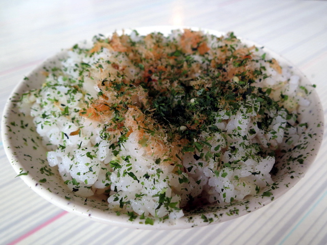 鮭魚飯:若真得需要一碗米飯搭著吃,葉子還是建議,點白飯即可