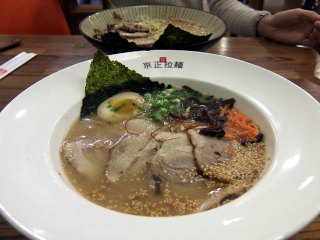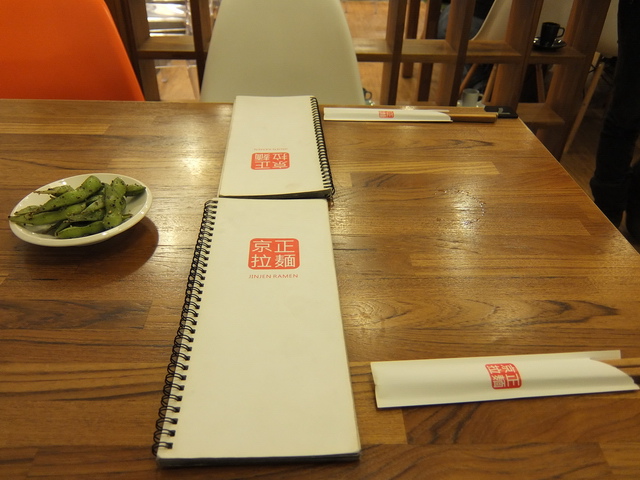 京正拉麵:若樓下無人等候,那就放心往上走,一定還有位置,不用害怕等候啦!今晚用餐比較晚,樓上客群三三兩兩,店家客氣地,給了四人位置,不用讓我們窩吧台