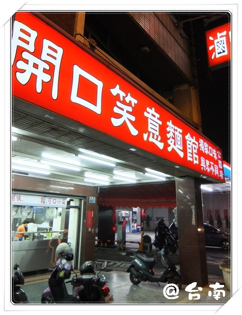 開口笑意麵:麵店位於加油站旁,偌大的紅白招牌,很容易找。生意不錯,用餐時刻,內用、外帶皆有,再者,也開了好一些日子,應該有其口碑。營業時間為9:00~21:00(下午無休)