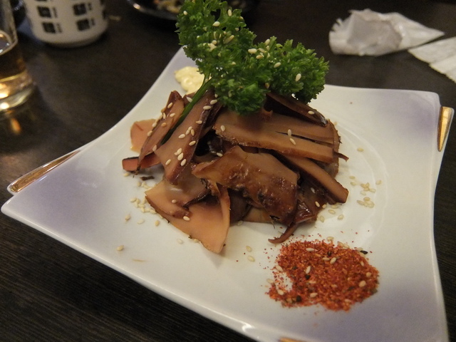 南蠻漬黑魷魚:應該沒記錯菜名!?但跟上一品烤肉捲相當,很下酒的菜色,再者,食材也夠鮮,不是那種夠醬汁掩蓋的手法!