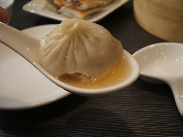 葉子回台南之前,順路上去台北車站2樓瞧瞧微風設置的餐飲廣場。晃了一圈,最後就選擇「滬園上海湯包館」當作今天餵飽葉子的店囉。