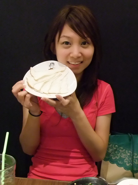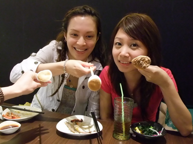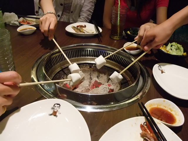 但最值得讚賞的是服務生的"特別Table service",原先服務生小妹妹(高三)詢問是否要示範一次(烤肉方法),葉子開玩笑地說:「不要一次,都給妳烤~好不好....XD」,怎知,小妹妹點頭後,就從頭(上菜)到後(烤棉花)地服務我們四人,真正就感心啦(台)!也因如此,亦使我們四人可以好好聊天^___^a...