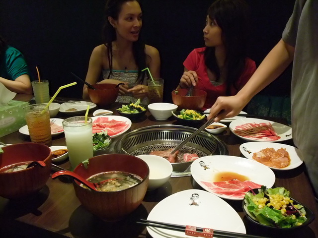 一出高鐵,已是晚餐時刻!原本露露提議吃原燒,但礙於沒有訂位&搭捷運時間,還是選擇車站的微風廣場比較值得些,畢竟難得相聚,時間寶貴啊!微風美食街可是包羅萬象,充滿各式料理和小吃,但剛好有一家日式燒肉店,恰好可以滿足露露想吃肉的慾望!而且這一次還有許久未見的ㄚ斐&秀沂,葉子可是豔福不淺啊!(魔女:「有種!拍照就給我靠很近....看看...(殺氣)」