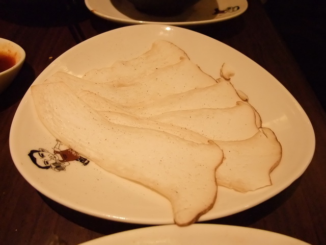 整體而言,肉和海鮮的品質都很不賴,尤其豬五花、蝦子、杏鮑菇,豬五花略烤後,微沾燒肉醬汁,味道可是很下飯(嘿嘿~恰好有給一碗鮭魚泡飯);蝦子已貼心去殼,且烤紅後,入口有一股鮮甜味(這一餐最滿意的一品);招待的薄切杏鮑菇,店家建議稍微烤一面後微沾醬汁後,即可享用,味道也不錯,很特別!其品質與原燒相比,可是不幌多讓,尤其突如其來的服務(稍後講述),更是讓大家滿心歡喜!至於價格,也不貴,四人約兩張小朋友~