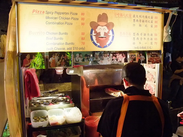 吃完抵禦虛寒身子的十全排骨後,當然隨路隨逛也是亂亂吃喝,當葉子排隊買了一組大腸包小腸後,就發現老妹已經替我們點好這一間店的招牌餐點,讓葉子吃著大腸包小腸時,有種熱淚盈框的fu....(其實,不用付錢真好哈)。這一間墨西哥雞肉捲小店,位於士林廟口前,很容易辨識,老闆人也很nice,大家有問題也可以上他的部落格瞧瞧或留言__。餐點的價位也不高,雞肉捲5070,小pizza8090,幾個人分著吃雞肉捲和Pizza,也是一種有別於夜市傳統小吃的幸福!