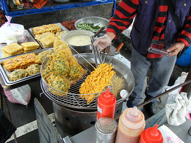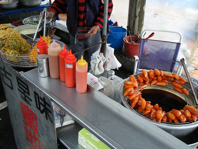 行海風伴隨著雨,老阿伯還是努力地吆喝客人(但老伯伯似乎聽力不是很好,要買要大聲些),葉子,除了愛吃外,也要給司機(葉子爸)一個停車的好理由,就是要發揮愛心,交關一下,再走麻^______^