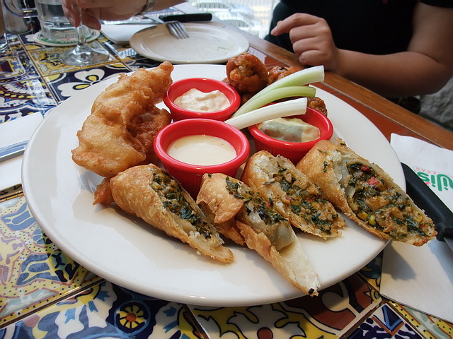 三色拼盤:一次可吃到三種炸物(雞柳條、雞肉捲、雞翅),算是很划算的一道菜