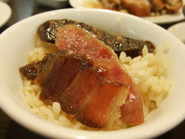 腊味鍋仔飯:這算是高貴而精緻的一鍋飯 [$180],好險,味道還不錯吃,尤其臘腸部分,很下飯~(好險,飯不多,不然那少少的幾片肉~還真得不夠配飯)