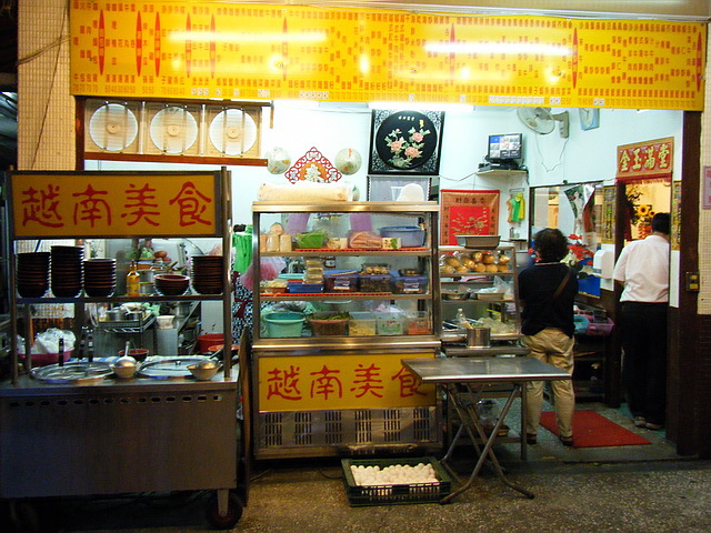 汐止,除了那聲名遠播的「銘記越南美食」外,還有許多間便宜平價的越南料理小店,葉子,這次介紹(推薦)這間,便宜卻好吃的小店「越南美食」。店內位置不多,約~15左右個位置,餐點價格介於$150~50區間,各包含熱炒、小菜、涼拌、麵等類。