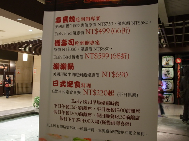 三燔美麗華:緊鄰於華漾旁,店內除了壽喜燒外,還有握壽司、涮涮鍋、日式定食平日供應