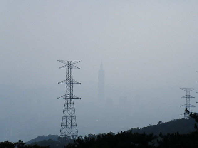 遠方望去,市郊顯得清晰許多,但遠眺台北101,可見台北市區的空氣,是如此迷濛著灰啊