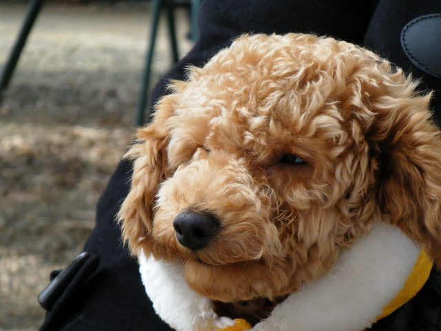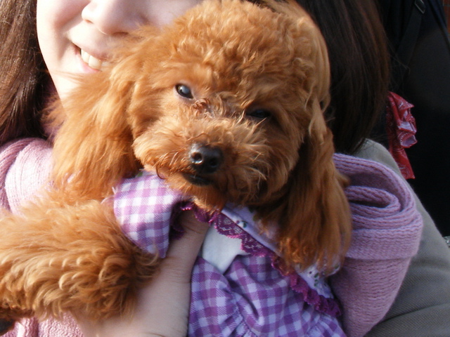 除了家人外,還有三隻紅貴賓相隨,先介紹這一隻『Teddy』,雖然是公的,但個性娘泡~據小妹言,Teddy有一個人不能在家的焦慮症!喊牠憂鬱小生,也不過份