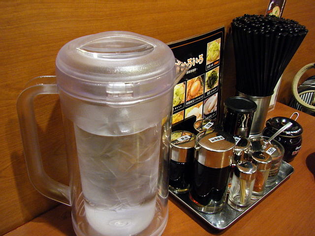 基本機絲組:冰開水、調味醬料、單點MENU等(基本上,花月嵐的口味都很重,除了激辣韭菜、冰開水外,醬料還真得不太需要用,直接喝湯頭就夠受嚕!)