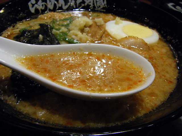 大蒜拳骨激辣拉麵(原湯):花月嵐的湯頭就是夠重夠濃,加上這鷹爪辣椒混成的激辣湯頭,在濃郁香味的後頭,是入喉噴火的辣,卻又是辣香而不死的味道~讚!若喜歡重口味,又愛吃辣的朋友,這一碗,值得嚕~(至少是葉子在台南吃不到的好味哩