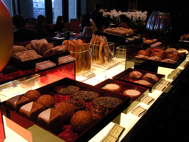 SALON DE THE de Joël Robuchon:抱著碰運氣的心態,就算廊側已有戶外座位,但依舊要候位40分啊。想想,搭車時間緊迫,跟初訪同,隨買幾品,帶上車再吃.......