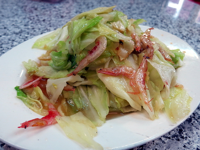 櫻花蝦高麗菜:兩品重口味後,來品清爽的,但不要小看這一品,高麗菜的甜味伴著海鮮味,可不輸前兩品,料好豐富,馬上又加點一盤