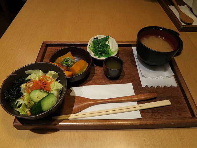 定食附餐:生菜沙拉、兩附小菜、味噌湯、梅醋汁,而小妹的親子丼,比葉子多了一品茶碗蒸