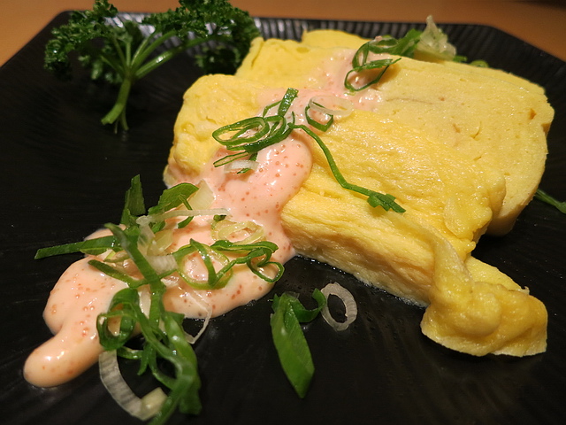 明太子玉子燒:明太子的重度不太夠,吃起來就是蛋捲沾著美奶滋的滋味,說不上壞,就是一品襯肚的小點