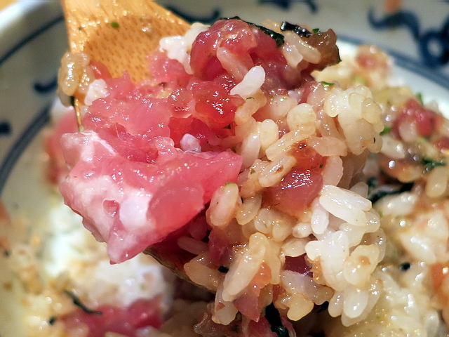 山藥鮪魚雙色丼定食:一半山藥泥,一半鮪魚泥,淋些醬油,再和著芥末泥一起拌均勻(要拌好喲~不然某一口入嘴,可是嗆得噴淚