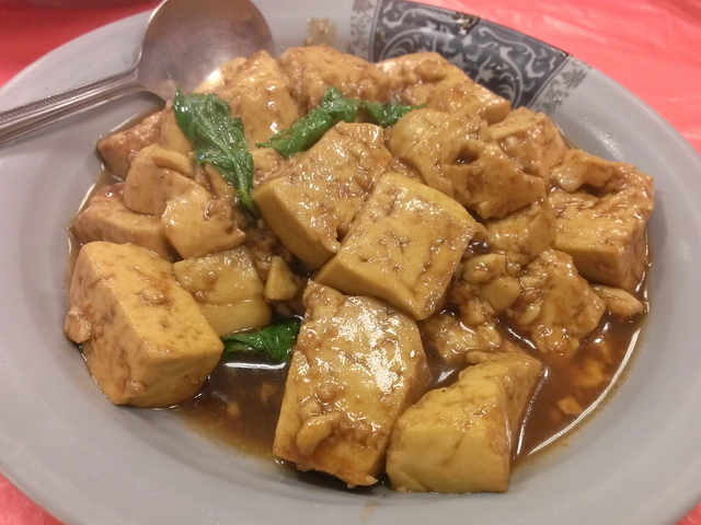 紅燒豆腐:美美的處理手法,是已經切塊的紅燒豆腐。豆腐自然好吃,但焦味略少些,還是習慣略帶焦香味道的紅燒豆腐!