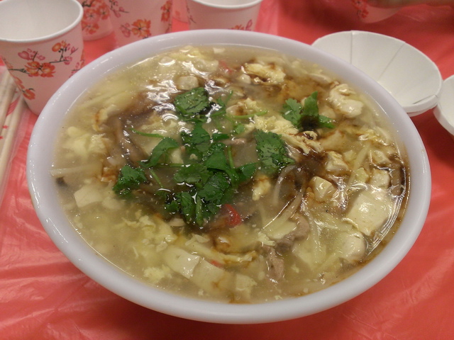 豆腐羹:若你跑深坑、石碇吃豆腐,人數不多,兩三人,那麼豆腐羹、滷桂竹筍、紅燒豆腐同為三品必點得菜色喲。但吃來吃去,葉子還是偏愛蛋刺羹多些