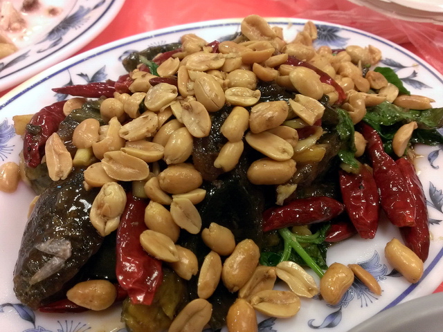 宮保皮蛋:不敢直接吃皮蛋的人,應該可以嘗試一下。這種先炸後炒的調理手法,少了皮蛋原本那種臭味,轉沾著香辣,又酥Q內嫩的口感滋味哩