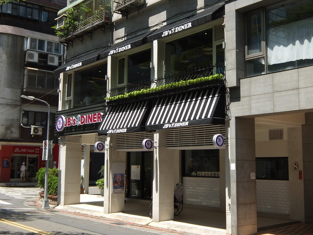 JB's DINER:店位於天母新光三越後面位置,鮮明的扛棒與二樓裝設,不用怕找不著。用餐空間,除了一樓的吧台位置外,主要區域為二樓空間;位置雖然多,但人潮可沒少過,假日用餐,葉子建議先訂位。