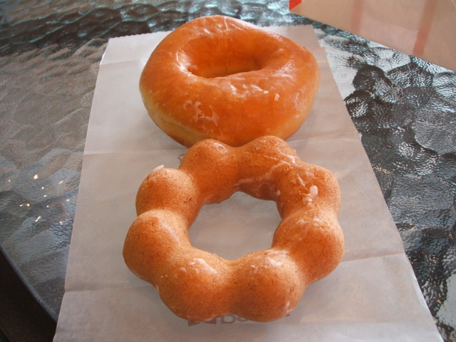 Mr. Donut來台開立之時,造成極大的轟動啊!一條條人龍願意排上好幾個小時就是為了這個小東西 - 甜甜圈. 當然坊間也開始出現一窩"瘋"的甜甜圈風潮. (但也如同蛋塔一般,最後存活的,還是有實力的店家). 之前吃過一次(蛋糕系列),覺得口感不合我的胃口,這一次經過高雄店時,就跑進去買兩個傳統式Donut嚐嚐,配著一杯咖啡,享受下午時光真是悠哉^_^a