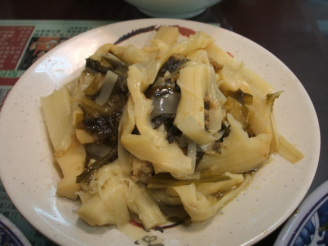 筍干 & 滷豆腐:筍干味道有些甜(應有加糖提味),但其與滷豆腐,都滷的很入味!很下飯的兩品小菜。