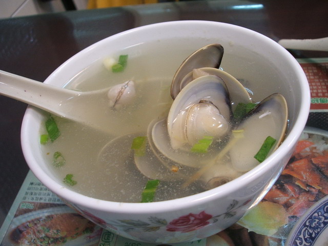 蛤蠣湯:選用大顆蛤蠣,其鮮度很夠!只可惜湯的調味太重,搶了蛤蠣的鮮味。