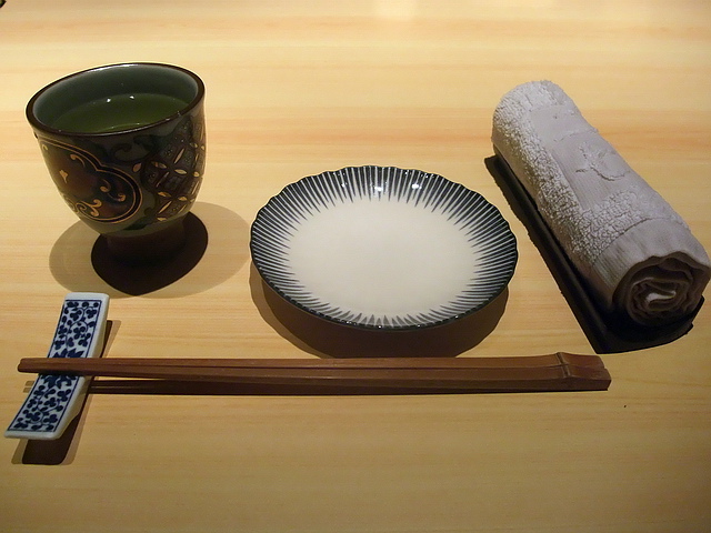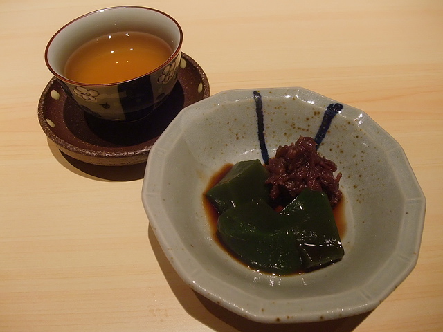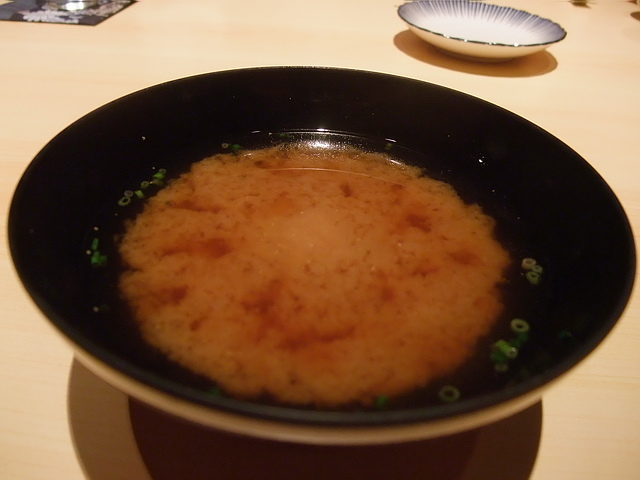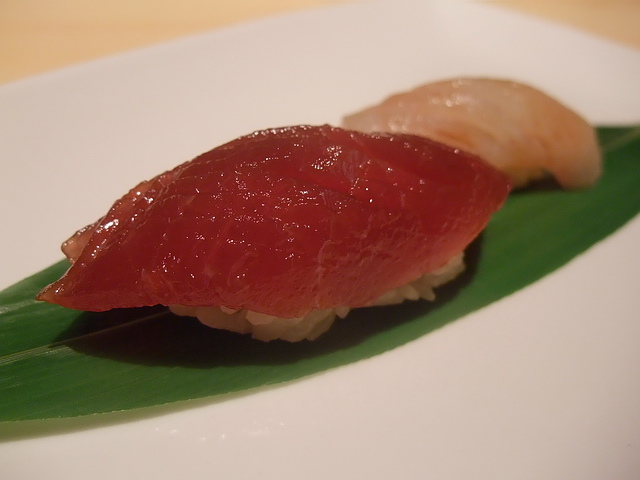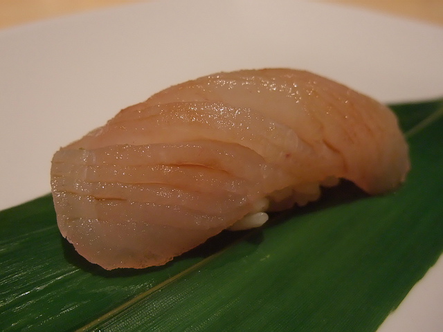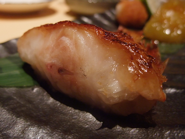 黑鮪赤身、剝皮魚nigiri:少了油脂部分,但完整呈現鮪魚紅肉的鮮味;相反地,剝皮魚的細緻滑嫩,讓葉子喜歡~缺點部分,除了第一貫外,後頭這幾貫nigiri的醋飯都不夠優,有點硬。